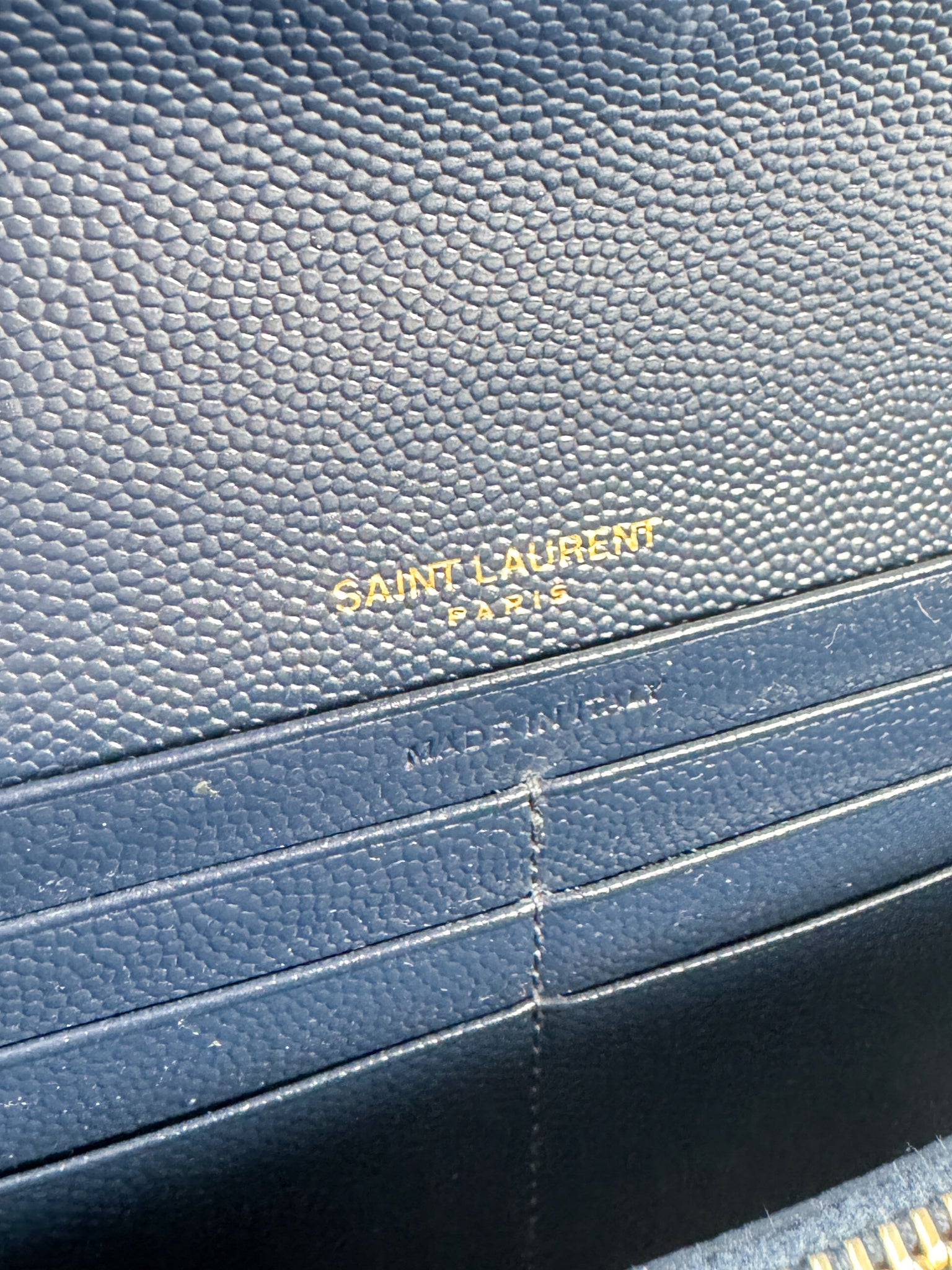 Condition: 8.5/10. This classic wallet is in great condition with some signs of wear on the corners and the YSL hardware on the front.