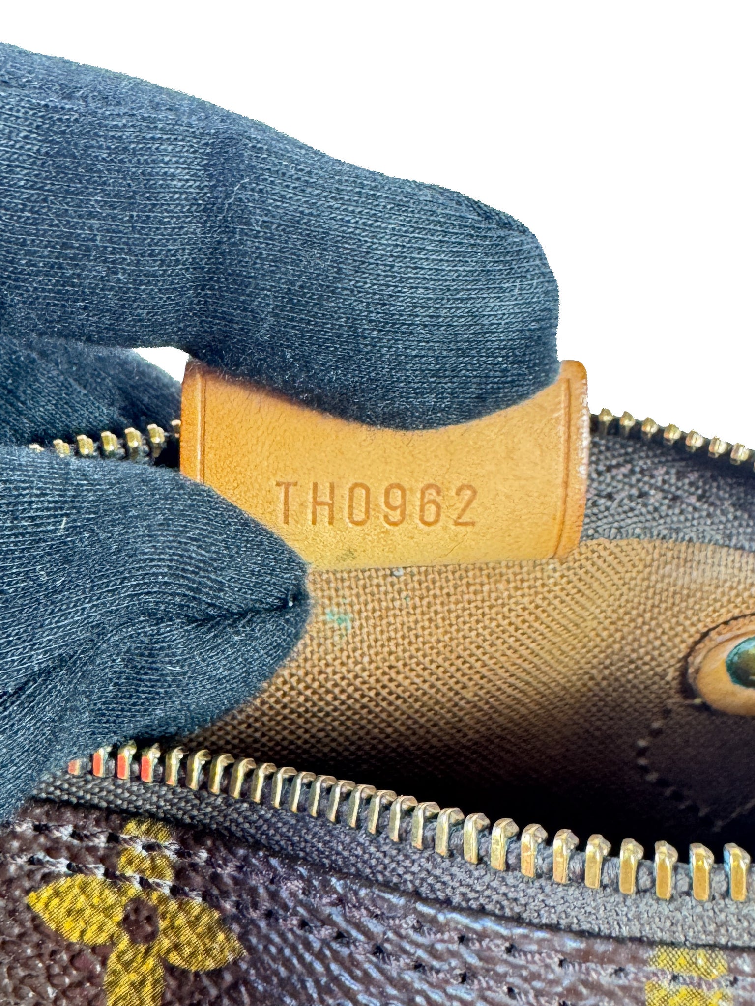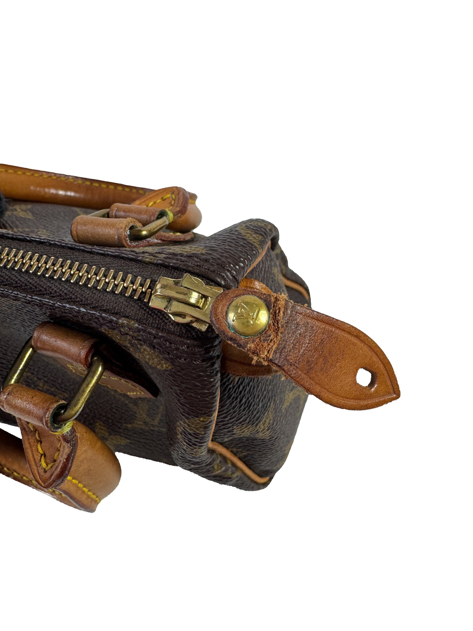 Condition: 7.5/10. Overall this vintage bag from 1992 is in very good condition. The handles have some cracking near the bases that may lead to a handle replacement sooner than later. The corners are in great condition and the interior is as well. We have it priced with the potential upcoming repair in mind. Leather zipper pull will need replaced but is still functional.