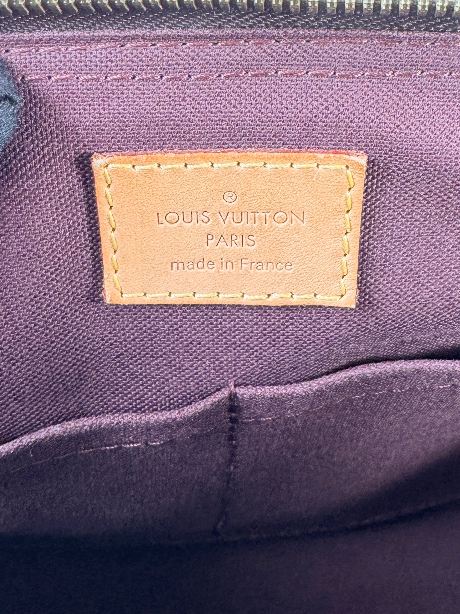 Condition: 8/10. This great bag is from 2015 and has some patina on the leather corners, handles, and trim. Slight discoloration and rubbing on the leather areas. The interior has slight discoloration. This bag was designed to be safely carried with a strap and has the proper hooks for a strap to easily be clipped on.