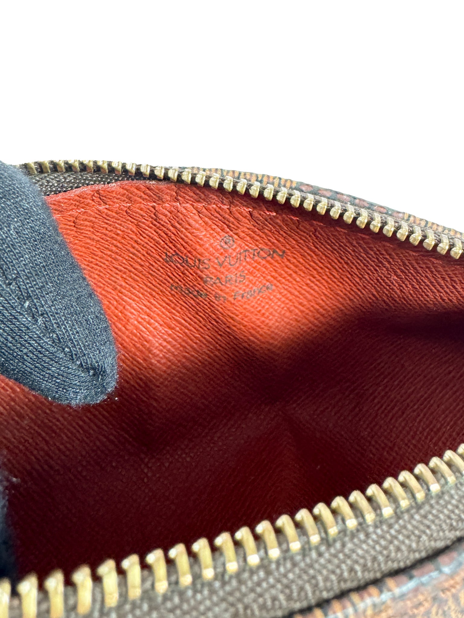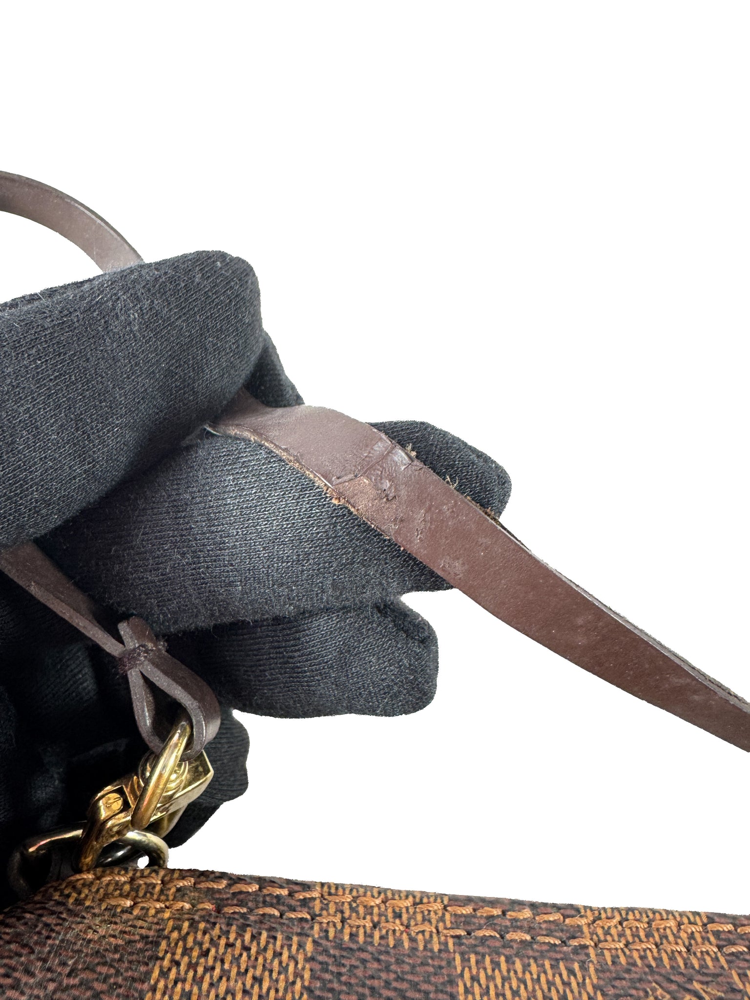 Condition: 7.8/10. Overall this mini piece is in great condition however there is some creasing and splitting on the strap, in addition to hardware discoloration. The corners and interior are in great condition along with the rest of the exterior.