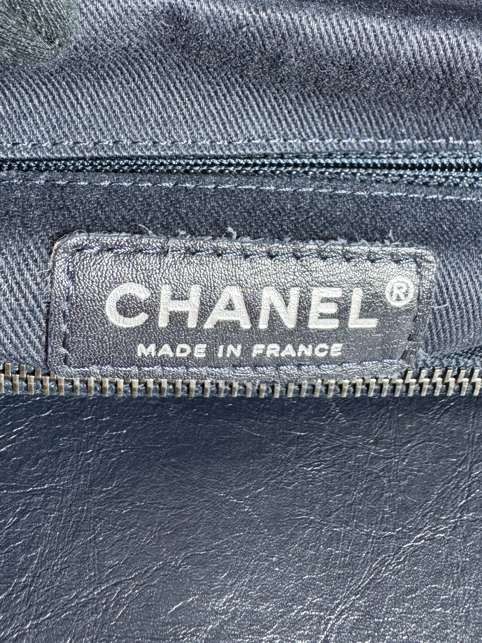 Chanel navy leather reissue quilted aged tote large 17177741