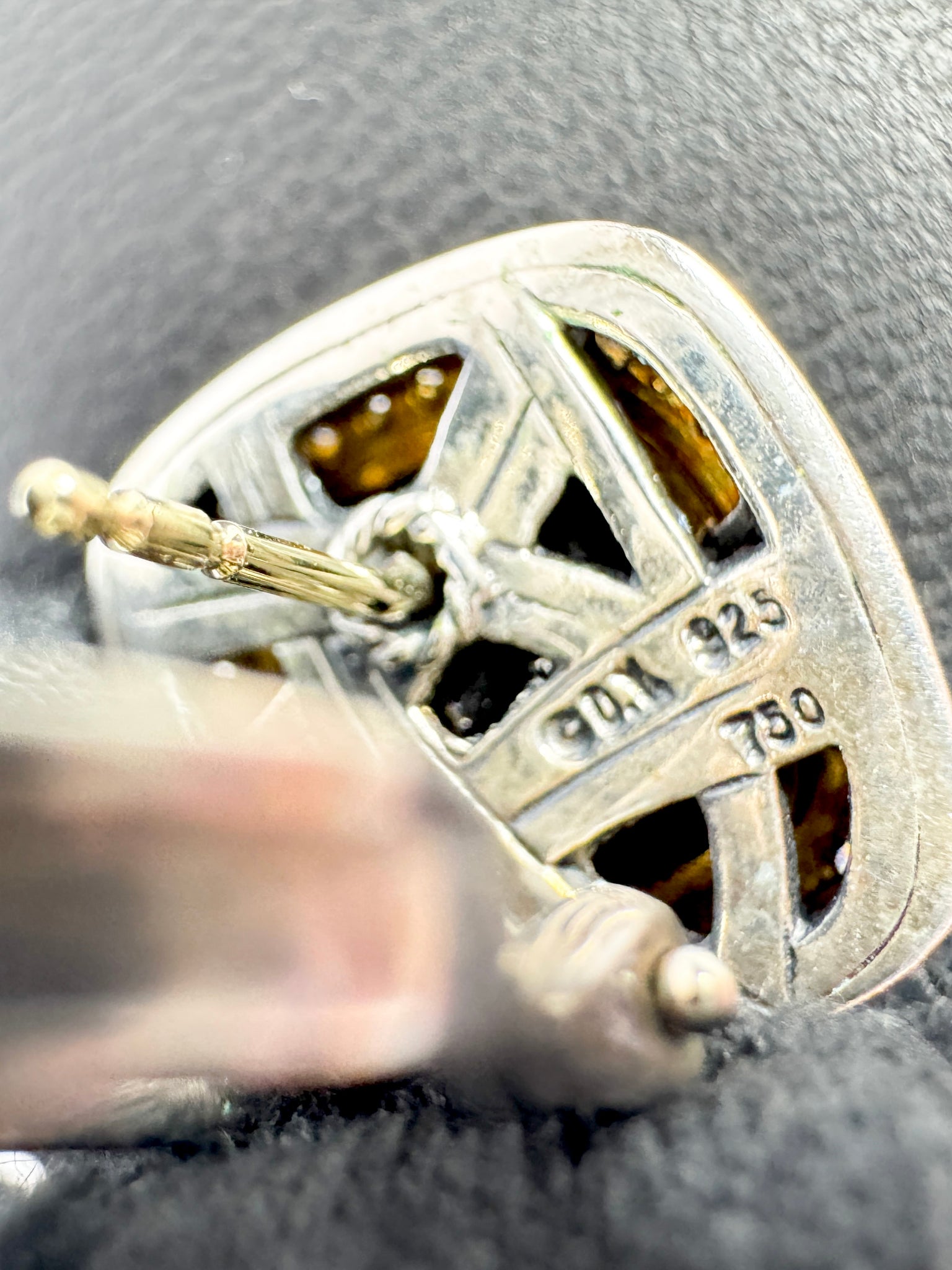 Materials: Sterling silver, 14k yellow gold, diamonds, garnet
