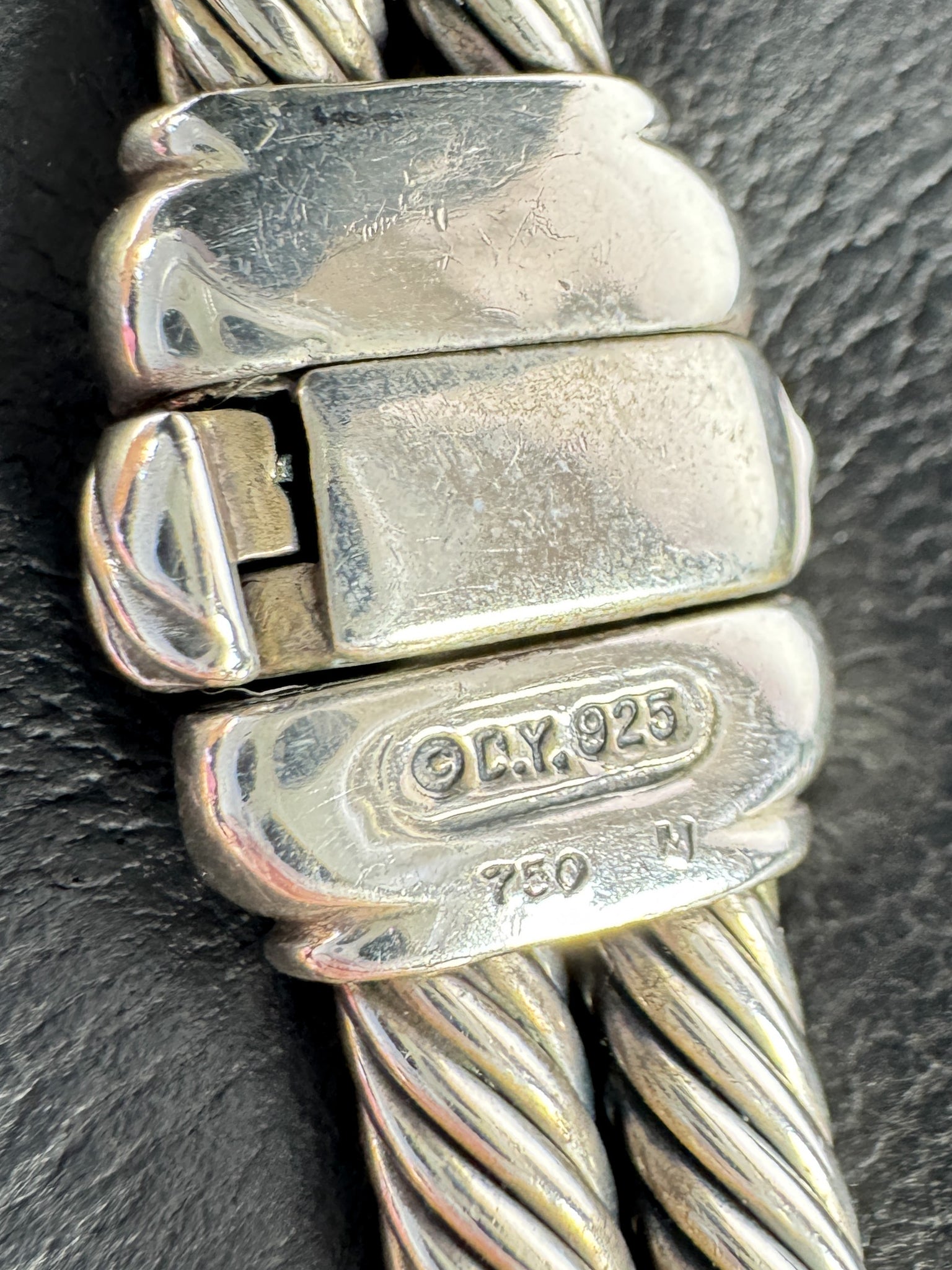 Condition: 8.5/10. This stunning cable bracelet features a peg in hole closure. Will fit a 6.5" wrist or slightly larger.
