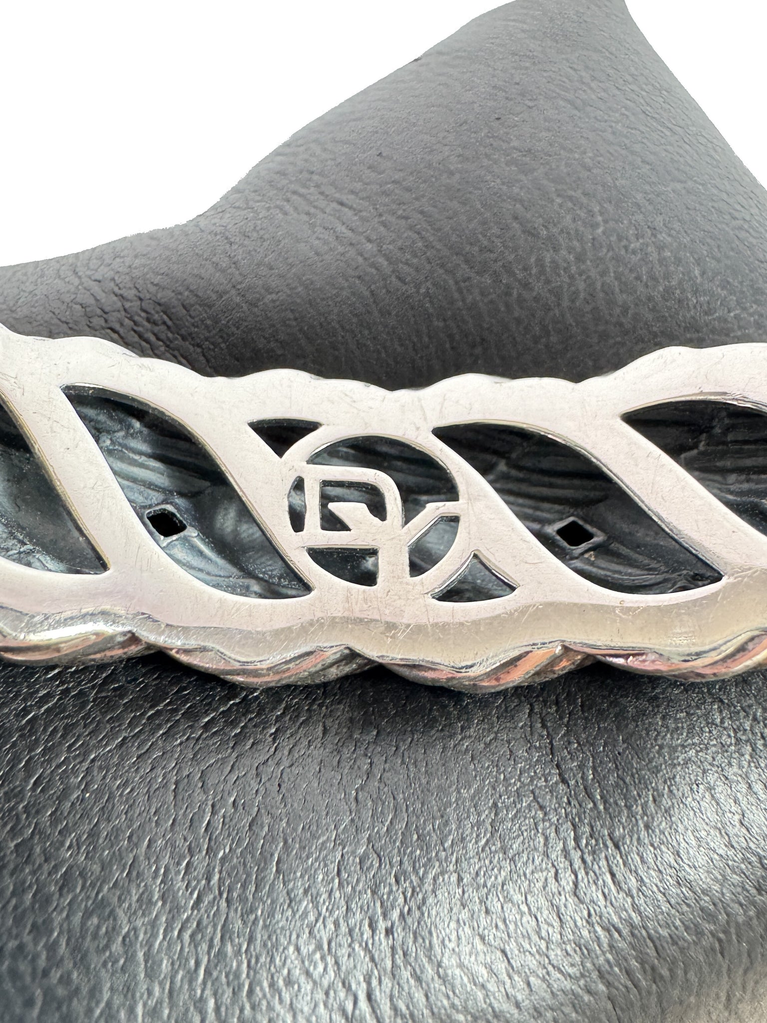 Condition: 8.5/10. This simple but very pretty piece has a hinge for easy on and off. There are some signs of wear via light scratches. Best fits a 6.5" wrist