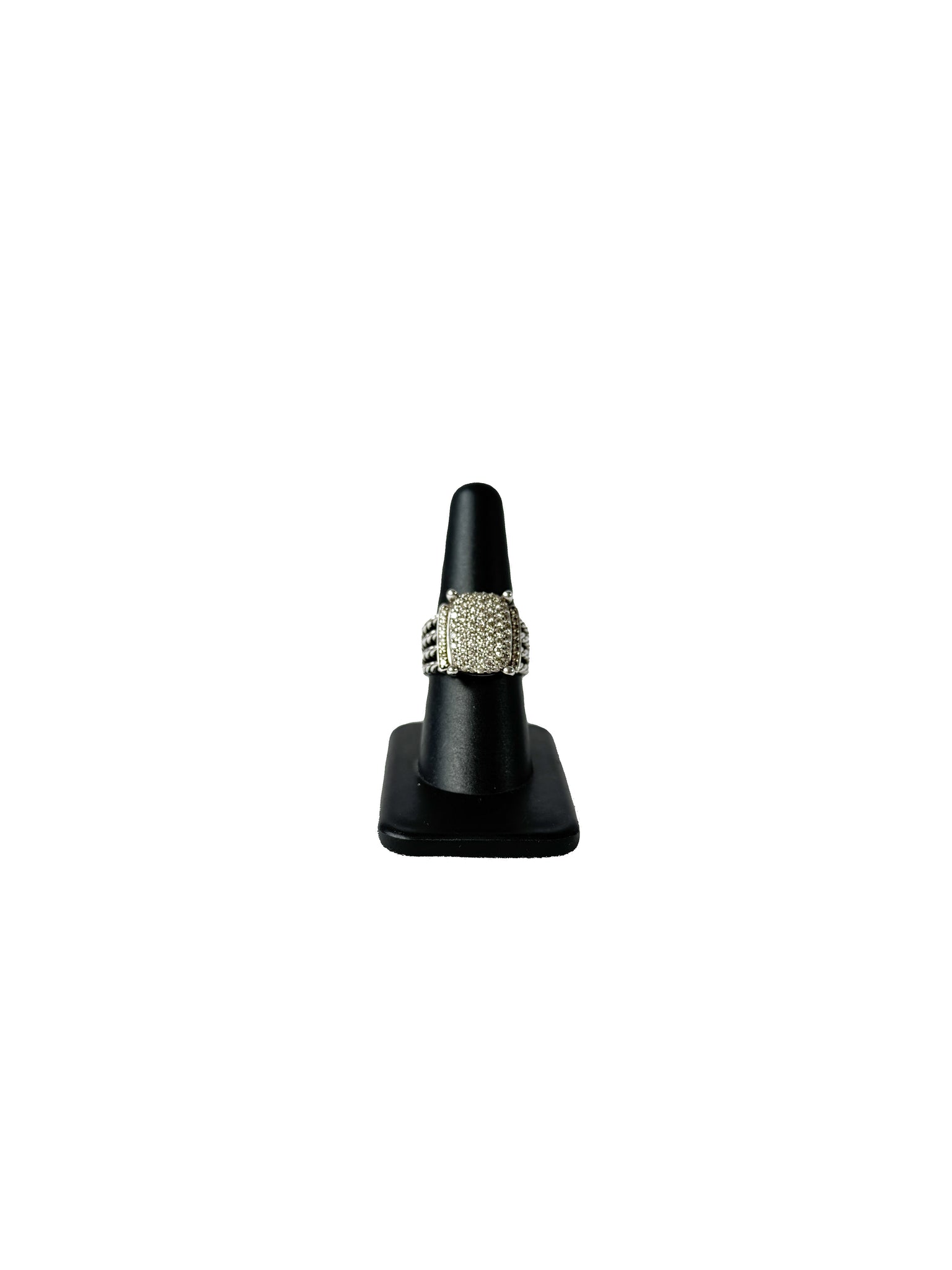 Condition: 8.5/10. This stunning ring has 1.12 carats of diamonds set in a sterling silver setting. All diamonds appear to be intact. There is some scratching on the band.