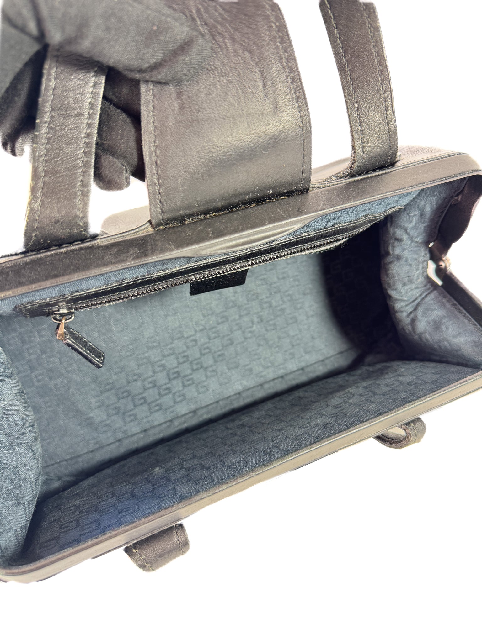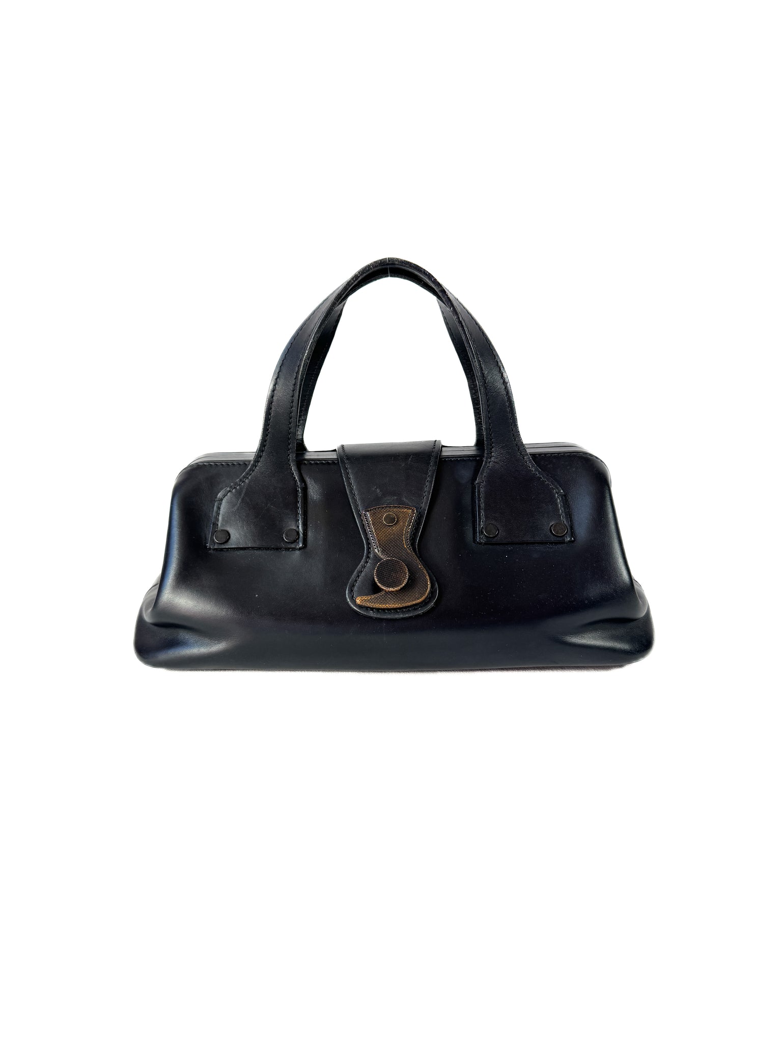 Condition: 8/10. This vintage style doctor bag is in good condition with some scratches and light rubbing on the exterior leather. The front hook is a very lightweight wood feel piece and opens easily. The interior of the bag is navy and in great condition.