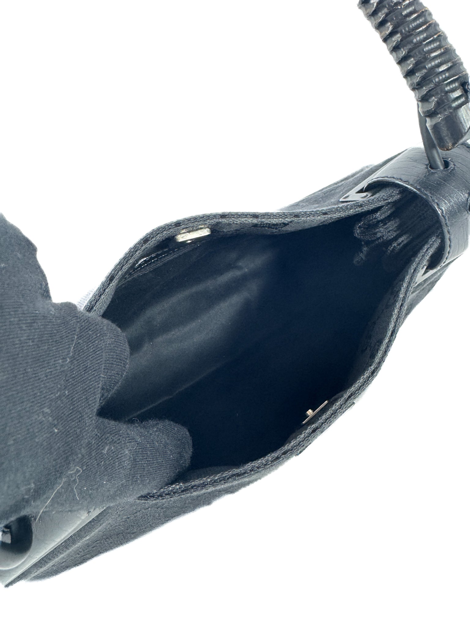 Condition: 9/10. This great vintage bag is in very good condition. The handle is carved wood and has a distressed finish to it revealing some brown color. The corners are in great condition along with the interior.
