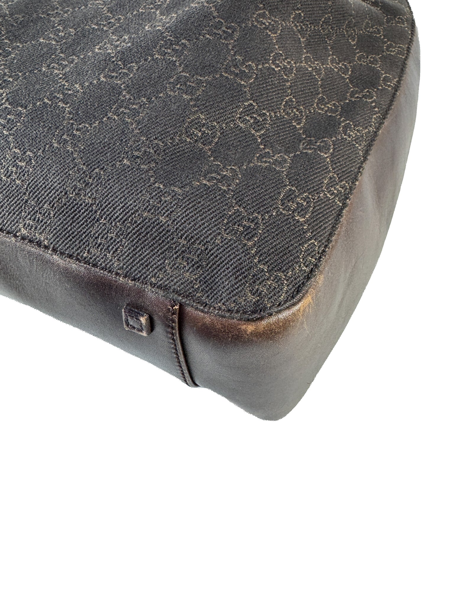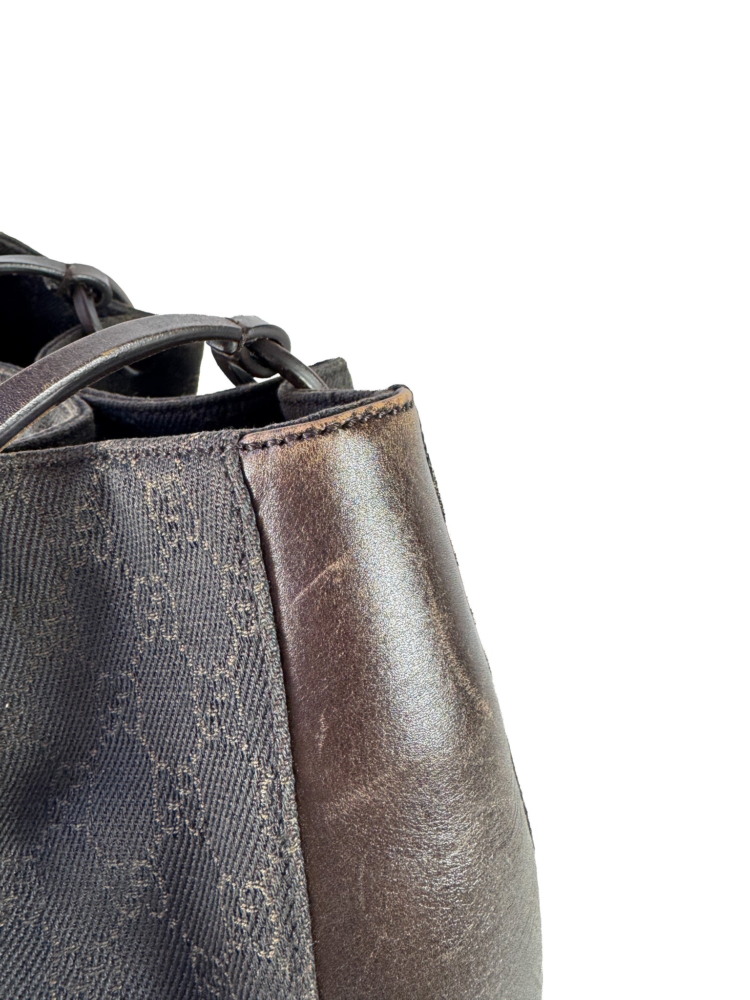 Condition: 8/10. This great lightweight bag comes with a leather pouch that is attached to the inside of the bag. The leather sides have some rubbing and color loss. The interior and canvas is in great condition.