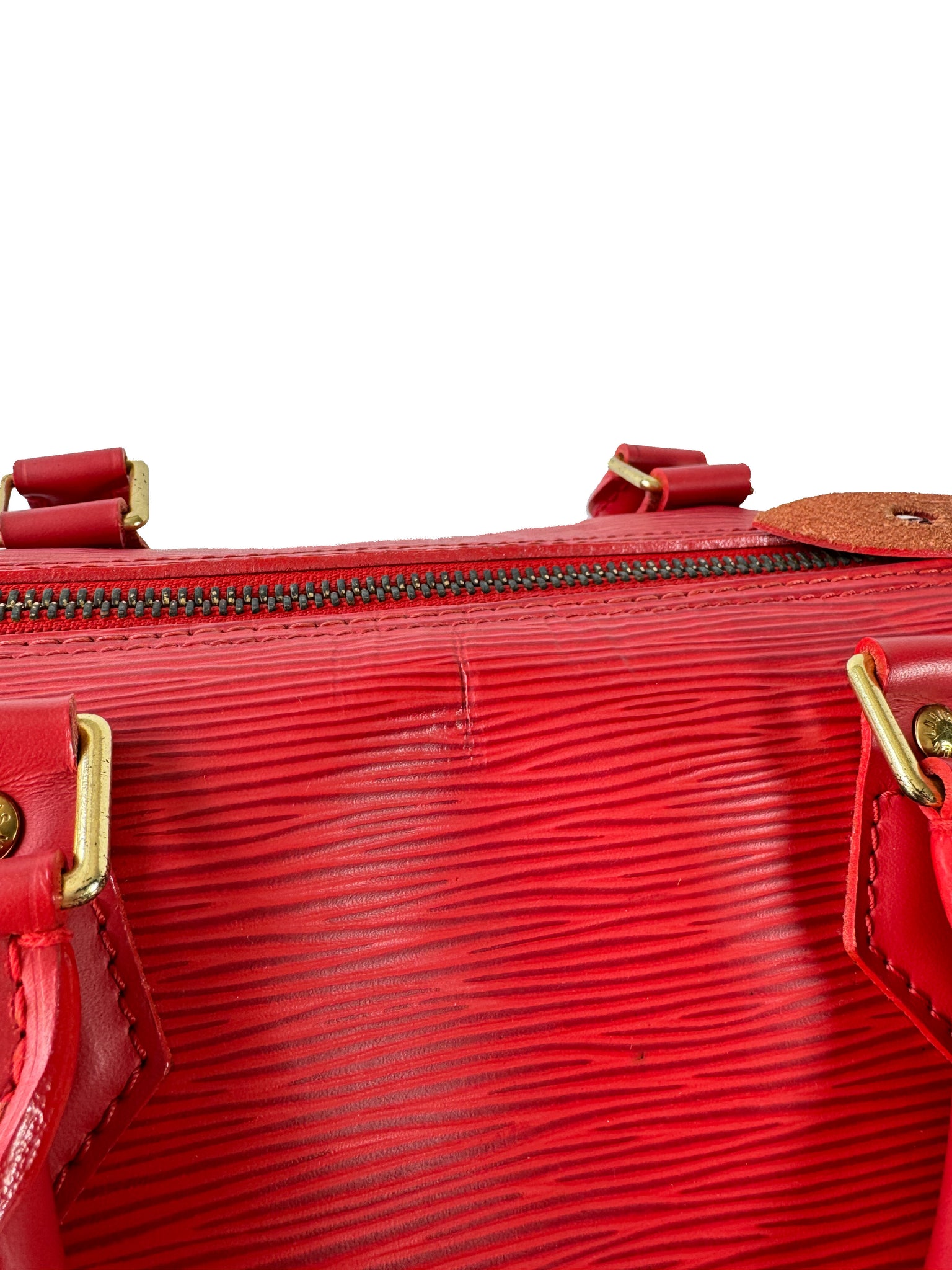 Condition: 8/10. This vintage bag is from 2004 and has some signs of wear. There is slight exterior wear via small rubbing at the corners, small spot of discoloration, and some creasing near the zipper. The interior has some staining.