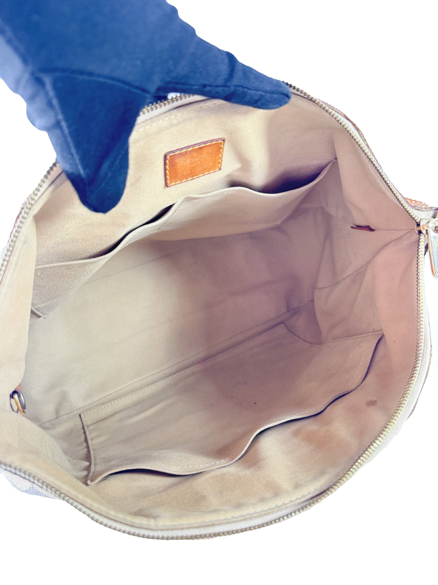 Condition: 8/10. This great bag can be carried multiple ways between the handles and the adjustable/removable strap. This bag is from 2011 and in overall very good condition. There are minor signs of wear on the corners, and moderate wear on the leather trim, strap, and handles. The interior is in very good condition.