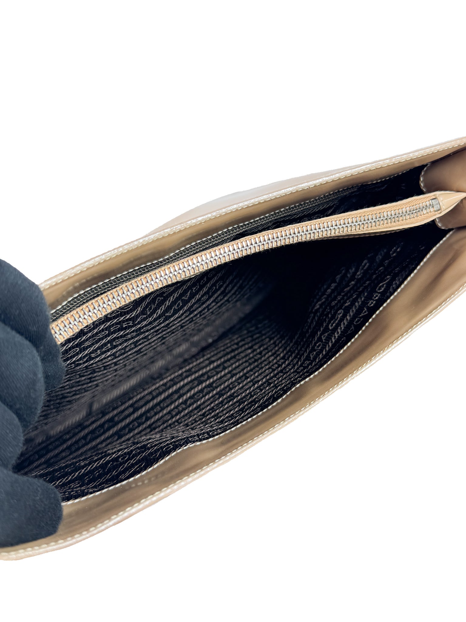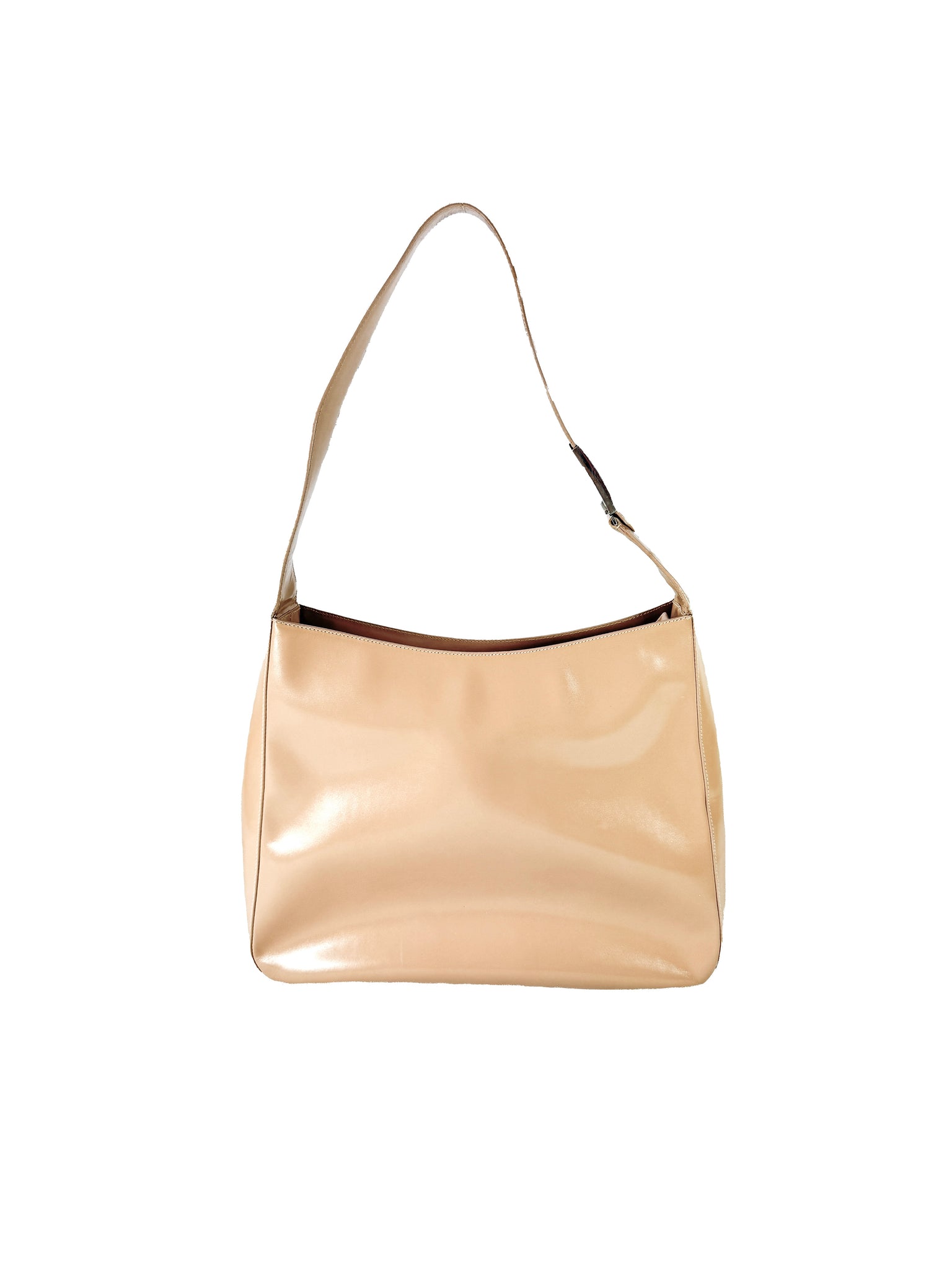 Condition: 7.5/10. This great vintage shoulder bag has some signs of wear via small spots, discoloration on the corners and bottom, and creasing on the strap. The interior has 3 main pockets and is in great condition.