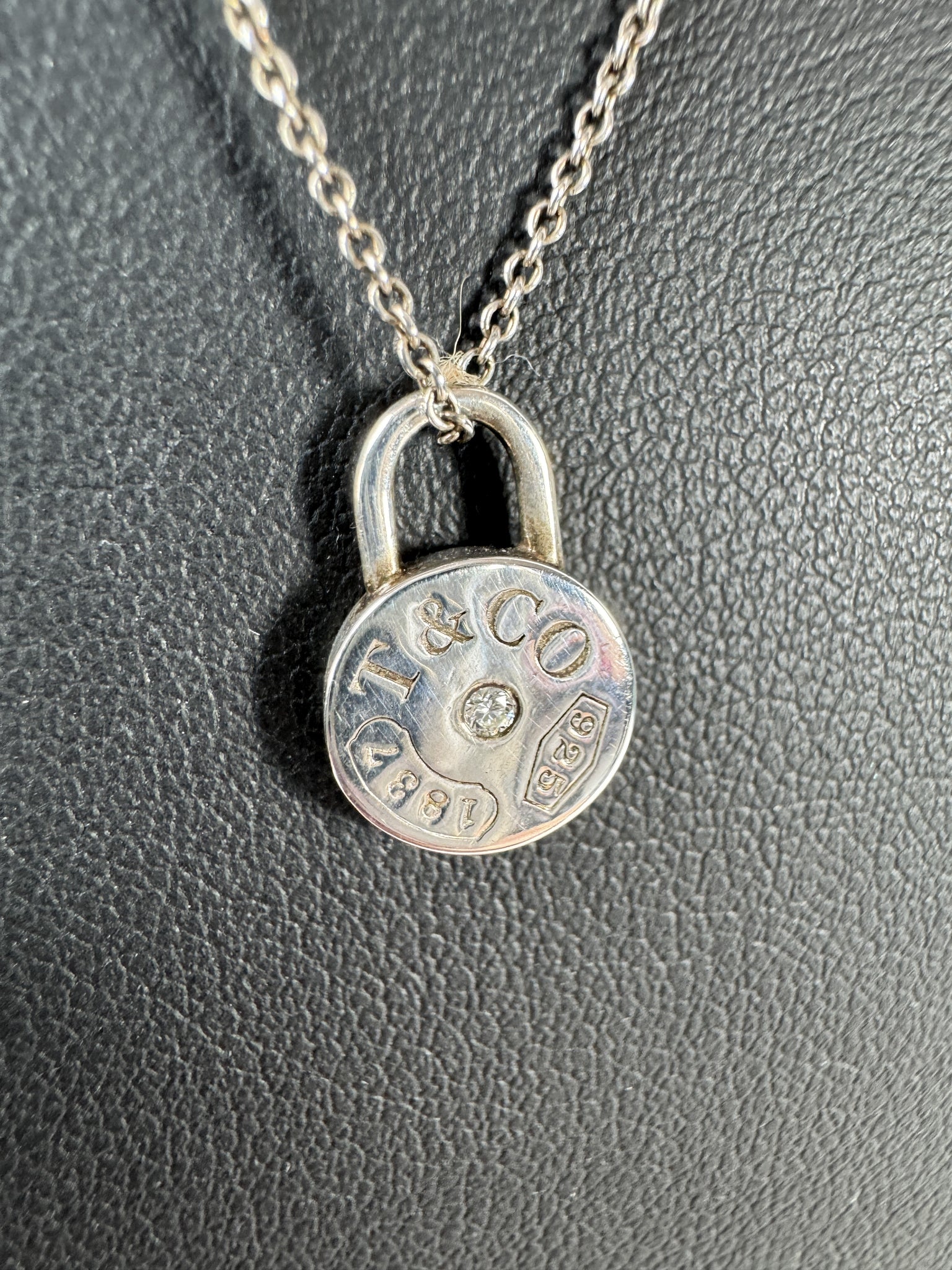 Tiffany & Co sterling silver & diamond 1837 round lock necklace