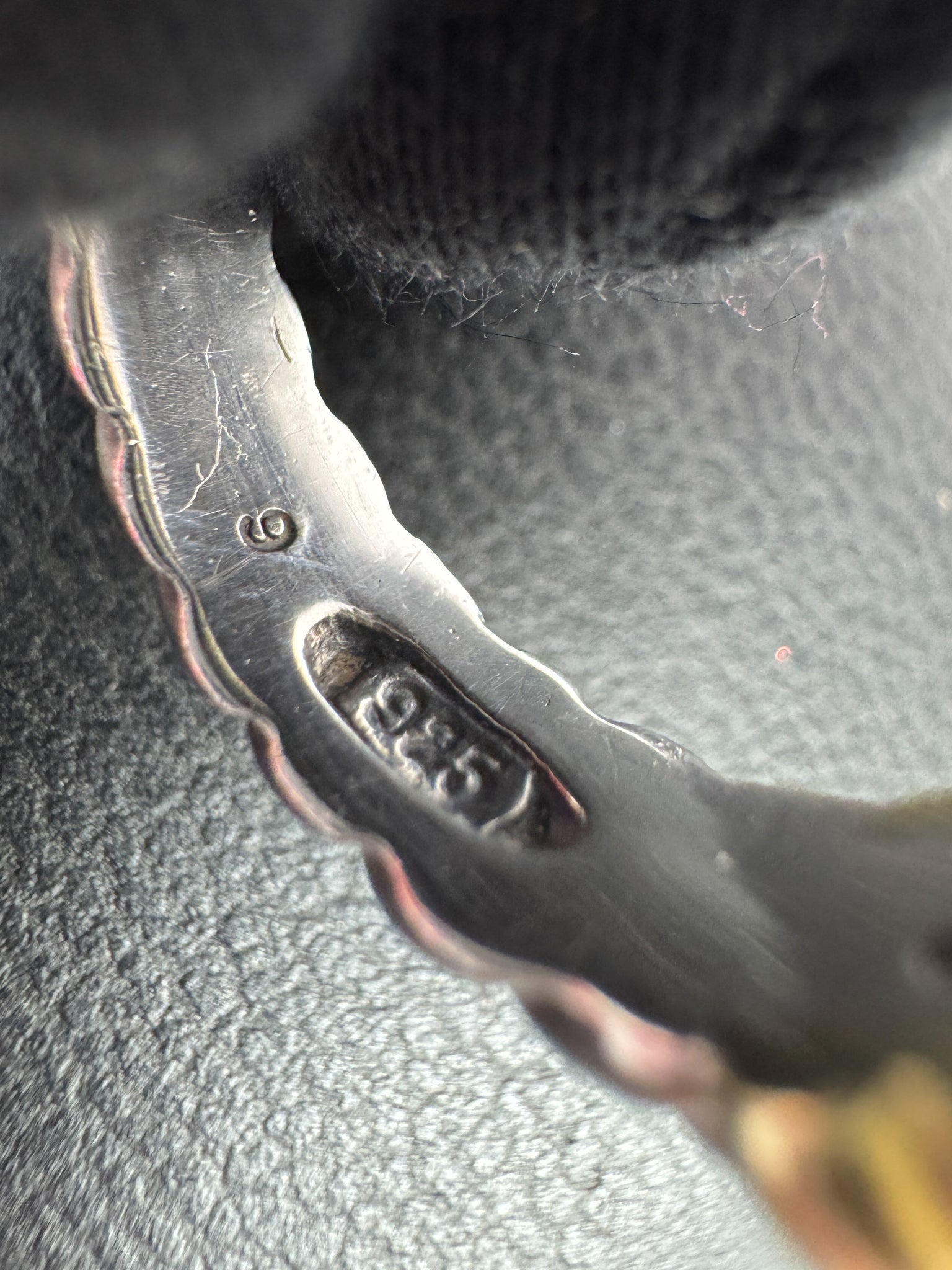 Condition: 8/10. This discontinued style is in very good condition with some signs of wear. The diamonds all appear secure and intact. There is scratching on the band.