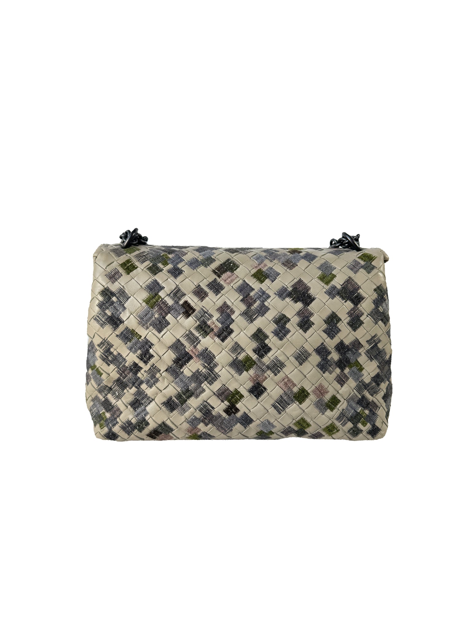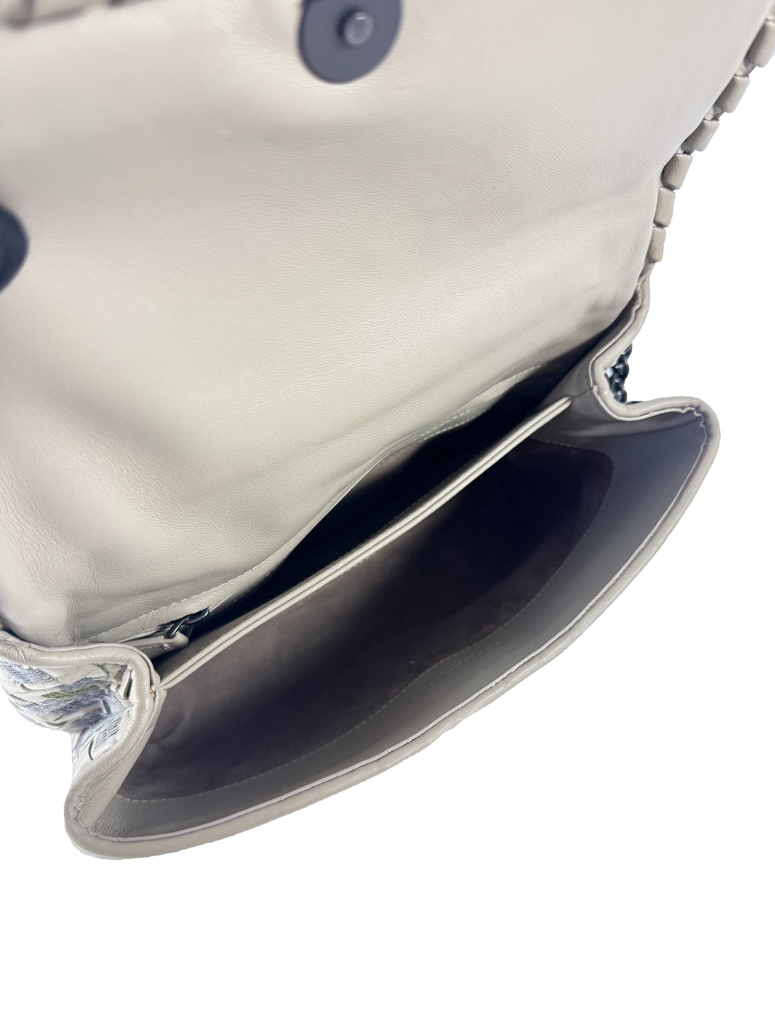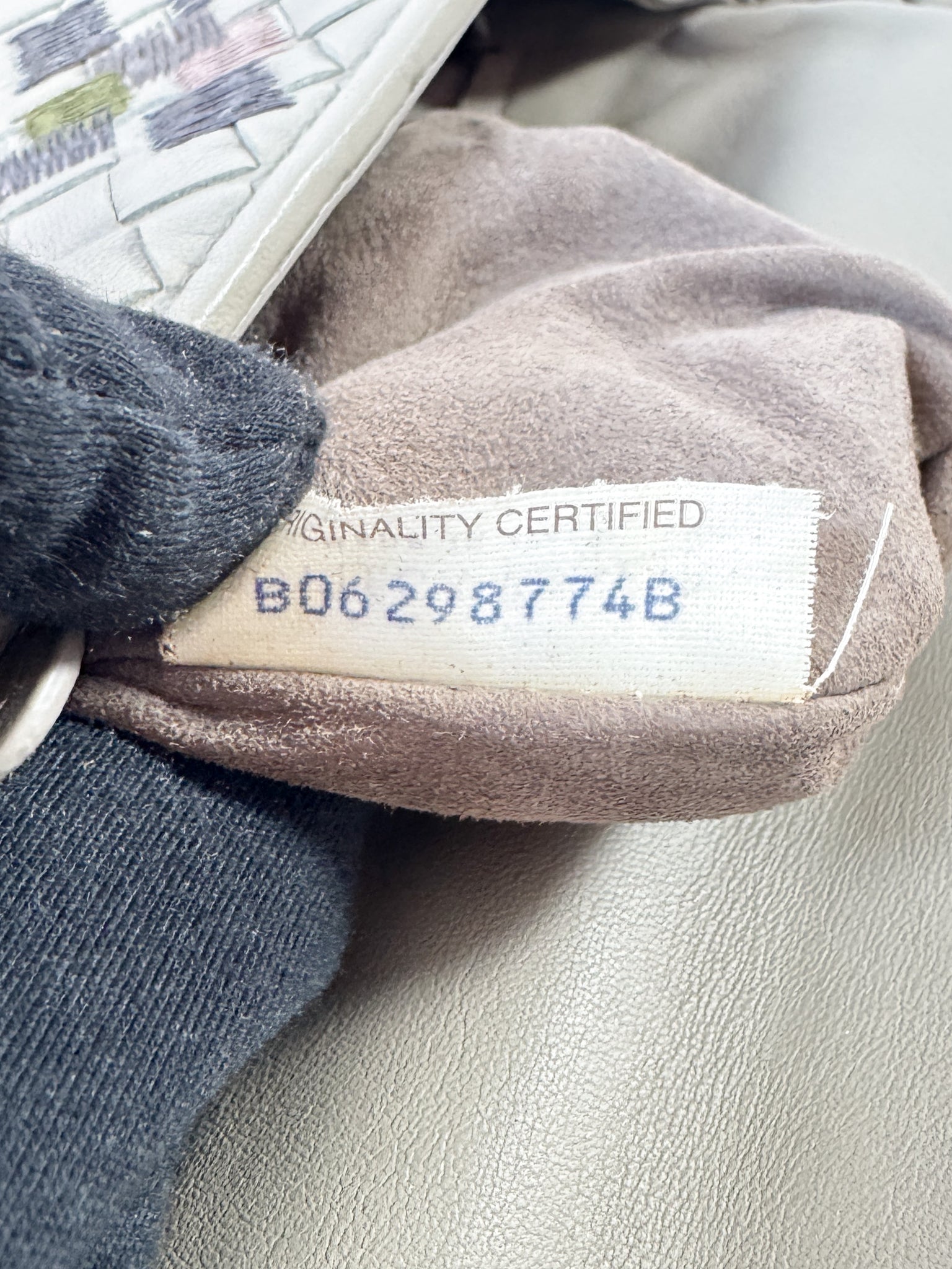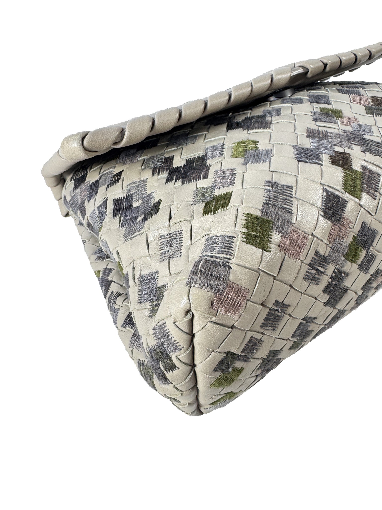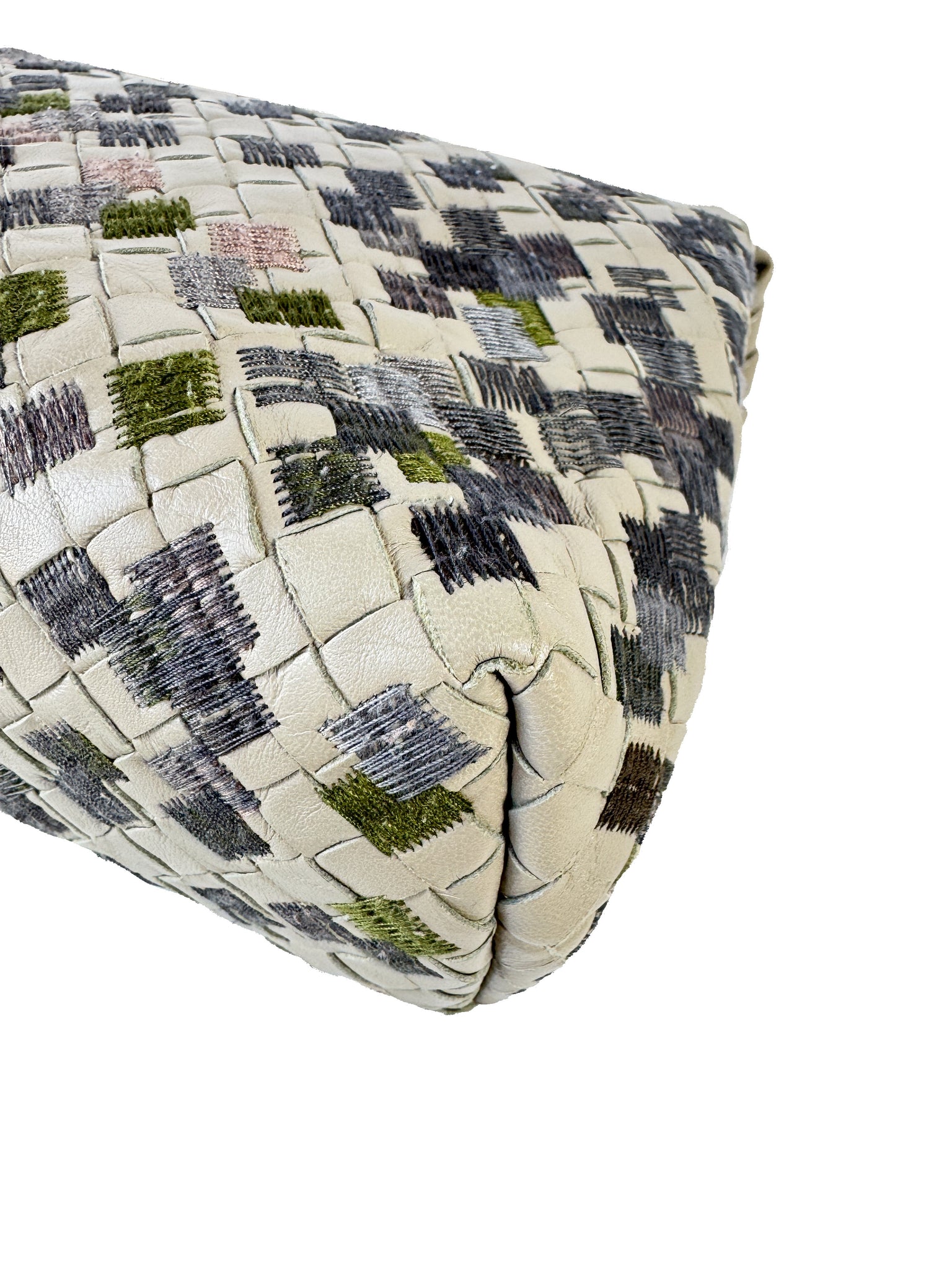 Condition: 9/10. Overall this bag is in great condition. It has been gently used. There is some pilling on the embroidered areas that are higher contact. There are two small areas where there is some glue residue but they are not visible when the bag is closed. The bag can be worn as a shoulder bag or crossbody.