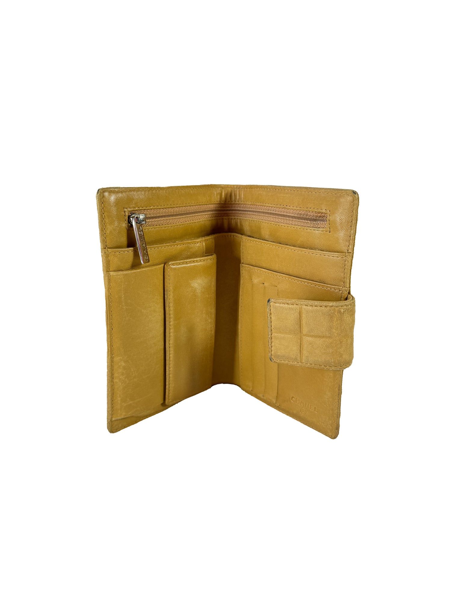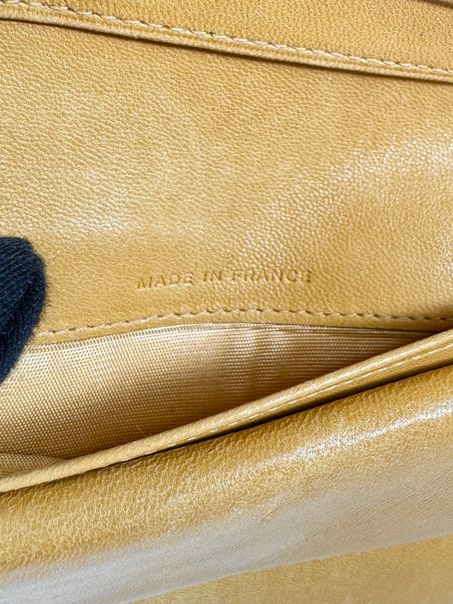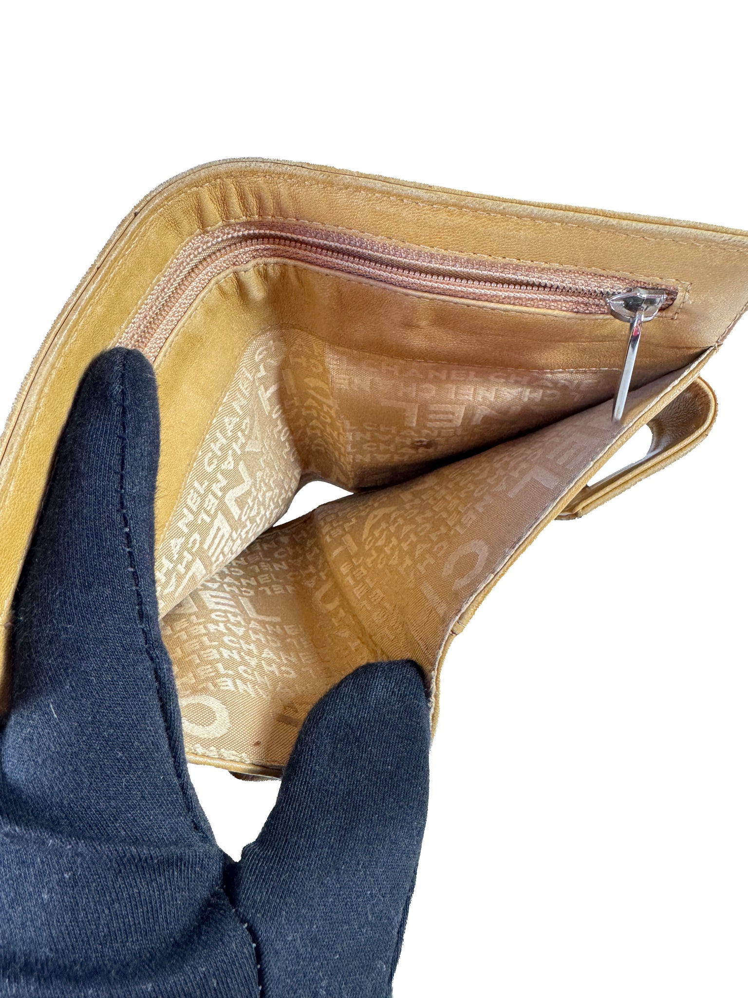 Condition: 7.5/10. This vintage wallet is from 2003-2004 series of Chanel. There are signs of wear at the corners and some discoloration throughout.