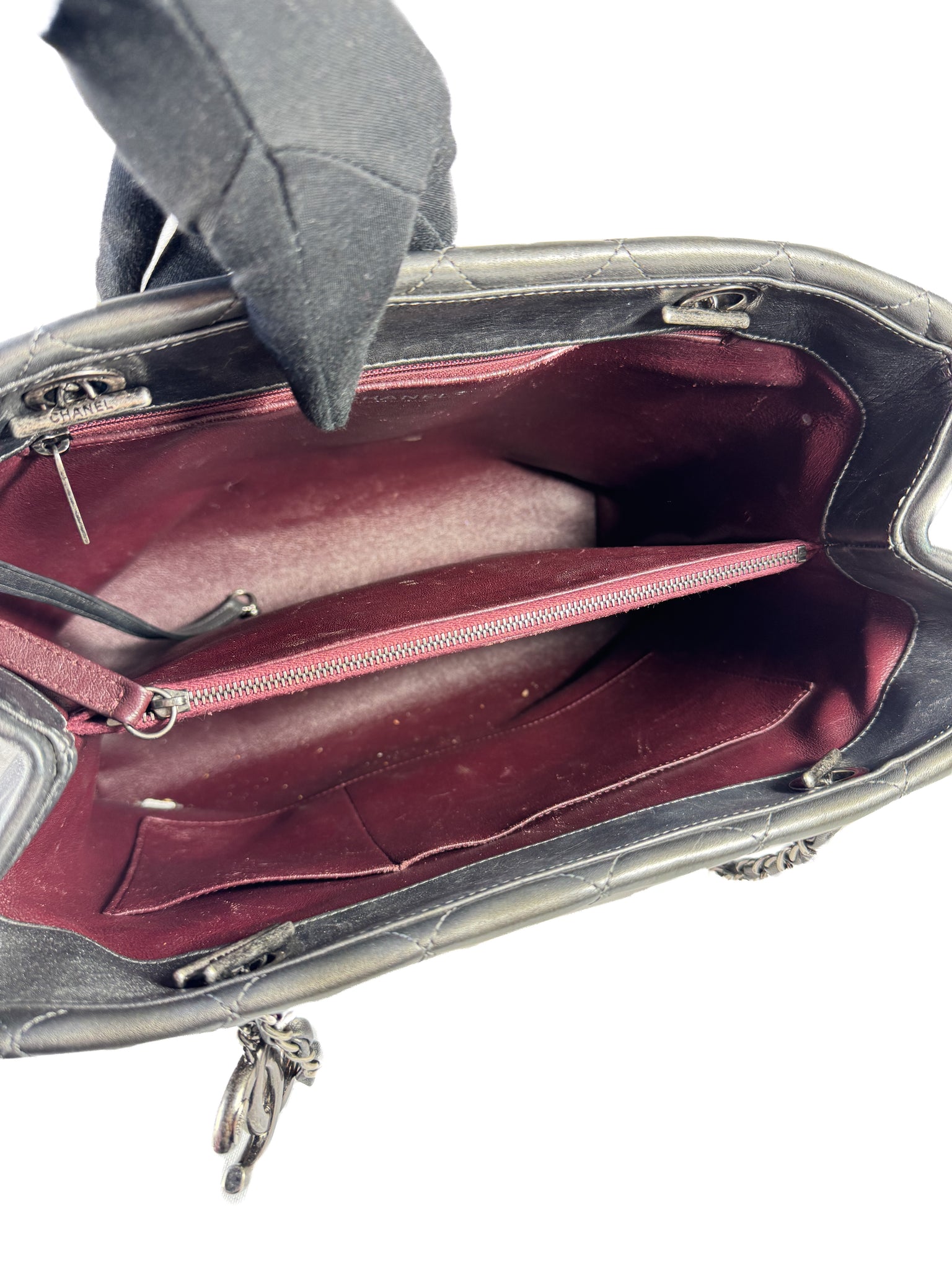 Condition: 7.5/10. This classic tote from the 2015 collection is overall in ok condition. There are some small signs of wear via a scuff, and corner wear. (top and bottom). The tote overall has a distressed look, which is purposeful. The interior overall is in very good condition but does have some signs of wear. Serial sticker is intact but starting to peel off.