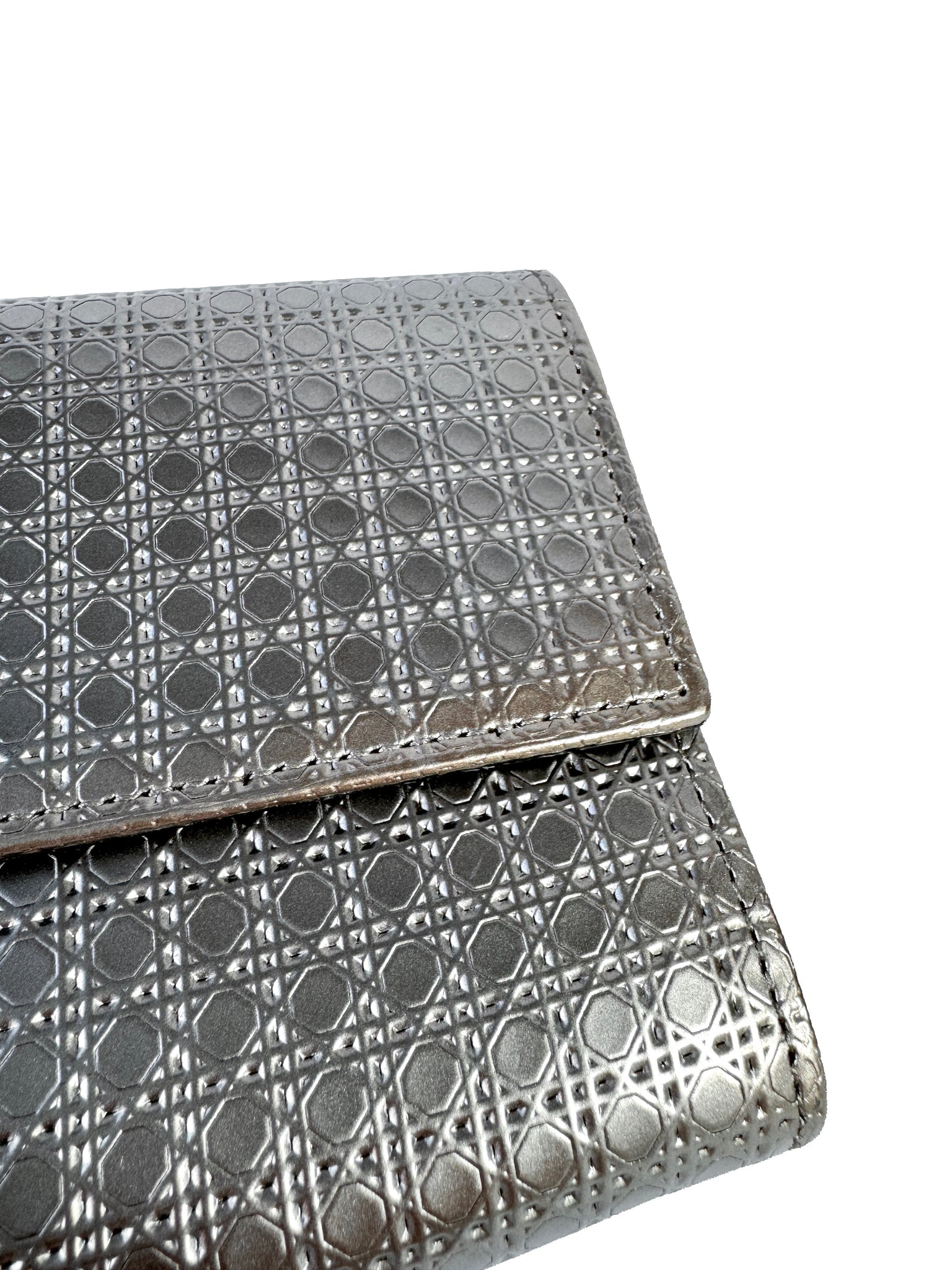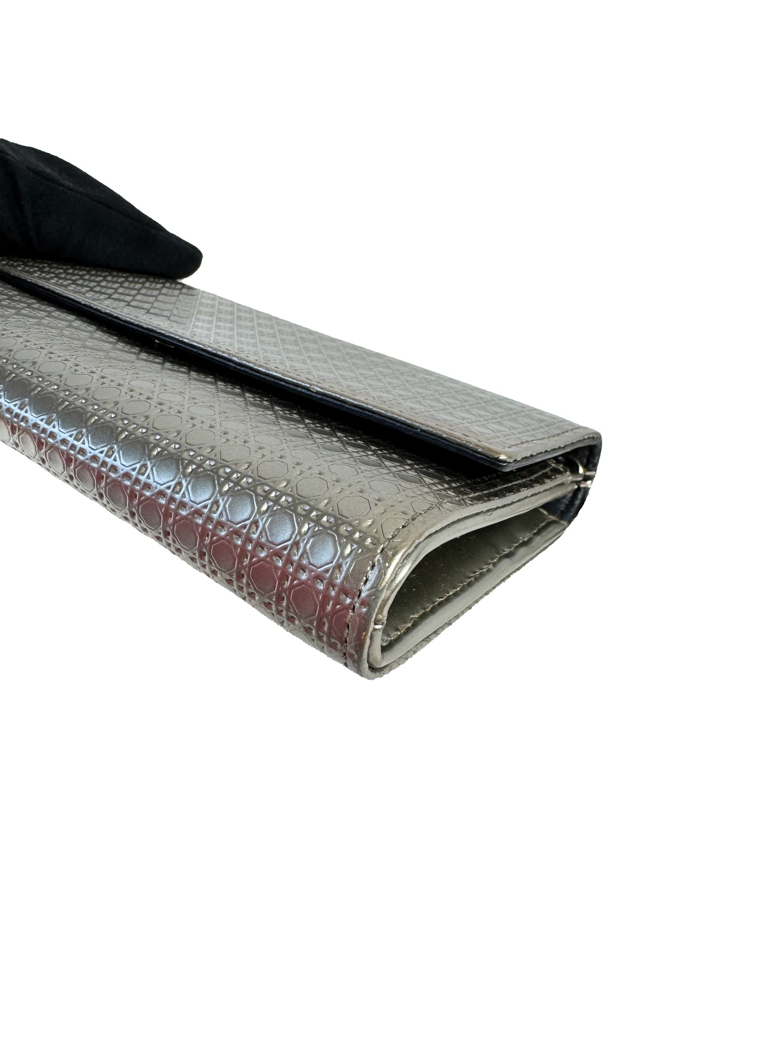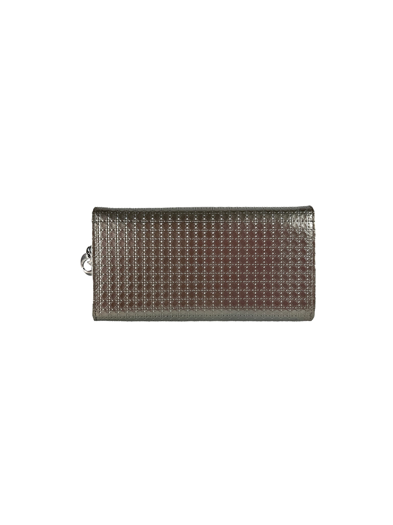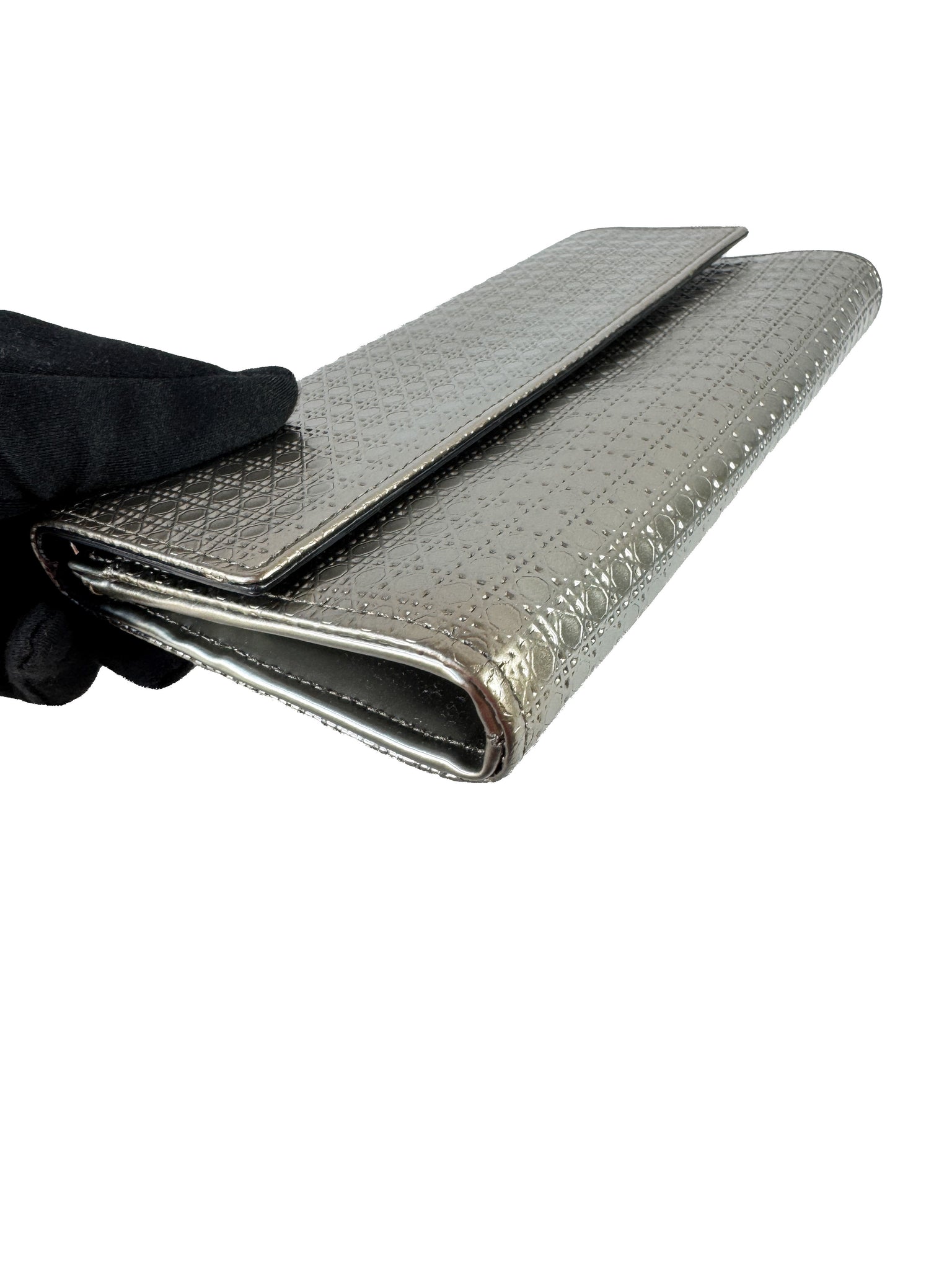 Condition: 7.5/10. This wallet on chain overall is in good condition. There is some light bronze toned discoloration along the edges, especially on the flap. The interior has some scratches. The snap annd strap rings are gold, while the Dior charm is silver. It is missing the original chain strap but a dark silver generic chain strap is included. It does come with box.
