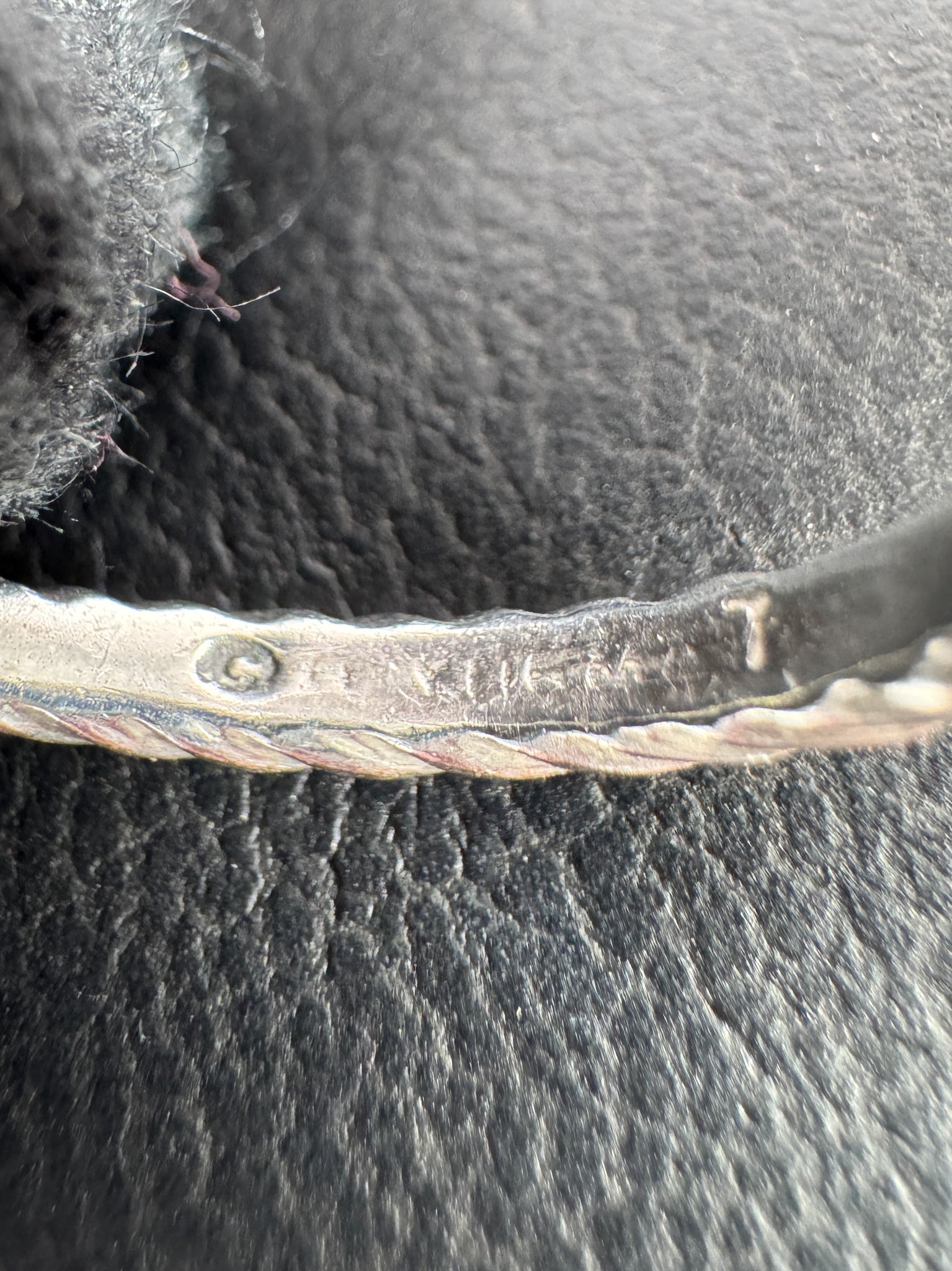 Condition: 8/10. This classic dainty ring is lightweight and perfect for stacking. This ring has lost it's purposeful oxidation.