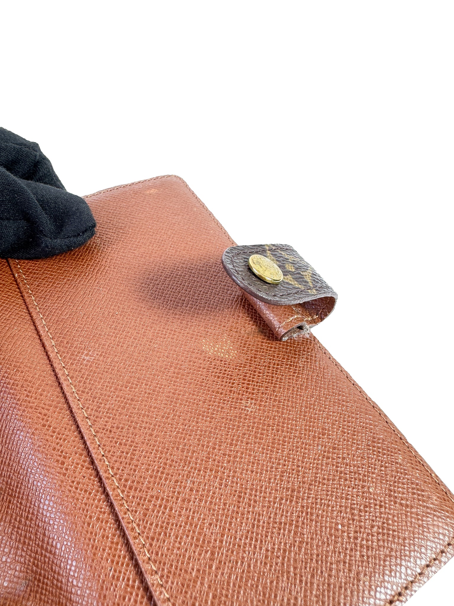 Condition: 7.5/10. This small agenda from 2000 is in very good condition with slight signs of wear. The pockets have flaking but are not sticky. There are other noticeable signs of wear on the inside via discoloration.